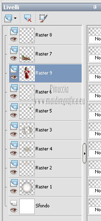 qui puoi trovare qualche risposta ai tuoi dubbi. Se l'argomento che ti interessa non è presente, ti prego di segnalarmelo. Questo tutorial è stato scritto in PSP X5, ma può essere eseguito anche con le altre versioni del programma. Per tradurlo, l'ho eseguito con PSP X. Occorrente: Un tube a scelta. Il resto del materiale qui Il tube utilizzato è di Adrimar. ![]() Apri una nuova immagine bianca 700 x 700 pixels. ![]() Apri l'elemento "masker" e vai a Modifica>Copia. Torna al tuo lavoro e vai a Modifica>Incolla come nuovo livello. Lascialo come sta. Apri l'elemento "sterretjes" e vai a Modifica>Copia. Torna al tuo lavoro e vai a Modifica>Incolla come nuovo livello. Spostalo in alto.Apri la cornice "frame" e vai a Modifica>Copia. Torna al tuo lavoro e vai a Modifica>Incolla come nuovo livello. Lasciala come sta. Apri "achtergrond" e vai a Modifica>Copia. Torna al tuo lavoro e vai a Modifica>Incolla come nuovo livello. Livelli>Disponi>Sposta giù (sotto il livello della cornice). Attiva il livello superiore. Apri "hulst" e vai a Modifica>Copia. Torna al tuo lavoro e vai a Modifica>Incolla come nuovo livello. Spostalo in alto, a destra della cornice.![]() Apri l'elemento "kerstboom" e vai a Modifica>Copia. Torna al tuo lavoro e vai a Modifica>Incolla come nuovo livello. Spostalo in basso a destra.![]() Apri l'elemento "deco" e vai a Modifica>Copia. Torna al tuo lavoro e vai a Modifica>Incolla come nuovo livello. Spostalo sotto la cornice.![]() Apri l'elemento "hert" e vai a Modifica>Copia. Torna al tuo lavoro e vai a Modifica>Incolla come nuovo livello. Spostalo in basso a destra.![]() Apri il tuo tube e vai a Modifica>Copia. Torna al tuo lavoro e vai a Modifica>Incolla come nuovo livello. Immagine>Ridimensiona, se e quanto necessario, tutti i livelli non selezionato. Nella paletta dei livelli porta questo livello sotto il livello della decorazione. ![]() Posiziona il tube nella cornice.Se necessario, attiva lo strumento Gomma ![]() e cancella eventuali tracce del tube visibili sotto la cornice. ![]() Effetti>Effetti 3D>Sfalsa ombra, con settaggi a tua scelta. I miei settaggi. ![]() Attiva il livello superiore. Aggiungi il tuo nome e/o il tuo watermark su un nuovo livello. Livelli>Unisci>Unisci tutto e salva in formato jpg. Se vuoi lasciare lo sfondo trasparente: Elimina il livello bianco di sfondo. Livelli>Unisci>Unisci visibile e salva in formato png. ![]() ![]() Se hai problemi o dubbi, o trovi un link non funzionante, o anche soltanto per un saluto, scrivimi 18 Dicembre 2012 |