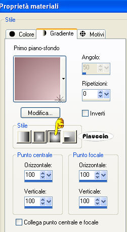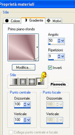 Passa il colore di primo piano a Gradiente, stile sprazzo di luce, con i seguenti settaggi: