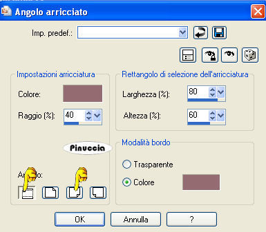 Effetti>Effetti di immagine>Angolo arricciato, con i seguenti settaggi,