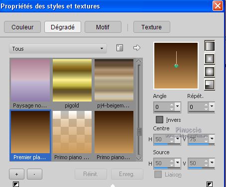Dans les plus récentes versions de PSP, vous ne trouvez pas le dégradé d'avant plan/arrière plan ou Corel_06_029.