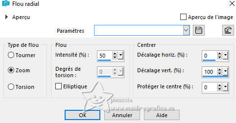 Le tutoriel a été créé avec PSP9 et traduit avec PSPX9, mais il peut également être exécuté avec les autres versions. Suivant la version utilisée, vous pouvez obtenir des résultats différents. Depuis la version X4, la fonction Image>Miroir a été remplacée par Image>Renverser horizontalement, et Image>Renverser avec Image>Renverser verticalement. Dans les versions X5 et X6, les fonctions ont été améliorées par la mise à disposition du menu Objets. Avec la nouvelle version X7, nous avons à nouveau Miroir/Retourner, mais avec nouvelles différences. Consulter, si vouz voulez, mes notes ici Certaines dénominations ont changées entre les versions de PSP. Les plus frequentes dénominations utilisées: ![]() traduction anglaise ici Vos versions ici![]() Nécessaire: ![]() Pour les tubes merci Luz Cristina. (ici les liens vers les sites des créateurs de tubes) ![]() consulter, si nécessaire, ma section de filtre ici Filters Unlimited 2.0 ici Filter Factory Gallery M - Ambrosia ici Toadies - Blast 'em ici Simple - Left Right Wrap (bonus) ici Mura's Meister - Perspective Tiling ici VanDerLee - Unplugged-X ici FM Tile Tools - Blend Emboss, Saturation Emboss ici Brush Strokes - Sprayed Strokes ici Nik Software - Color Efex ici AAA Frames - Foto Frame ici Filtres Factory Gallery, Simple et Toadies peuvent être utilisés seuls ou importés dans Filters Unlimited. voir comment le faire ici). Si un filtre est fourni avec cette icône, ![]() N'hésitez pas à changer le mode mélange des calques et leur opacité selon les couleurs utilisées. ![]() 1. Ouvrir une nouvelle image transparente 1000 x 900 pixels. 2. Placer en avant plan la couleur #c19019, et en arrière plan la couleur #0220a0. ![]() 3. Remplir l'image transparente avec la couleur d'avant plan.4. Effets>Modules Externes>Filter Factory Gallery M - Ambrosia vous pouvez changer les réglages à votre convenance ![]() Si vous utilisez le filtre dans Unlimited, ![]() vous avez la possibilité de changer les couleurs en cliquant sur Randomize, jusqu'à voir le résultat que vous préférez. ![]() N'oubliez pas qu'Unlimited ne garde pas le réglages en mémoire. 5. Effets>Modules Externes>VanDerLee - Unplugged X - Spiral ![]() 6. Effets>Modules Externes>Toadies - Blast'em ![]() 7. Effets>Modules Externes>FM Tile Tools - Blend Emboss, par défaut. ![]() 8. Calques>Dupliquer. 9. Effets>Modules Externes>Mura's Meister - Perspective Tiling. ![]() 10. Calques>Dupliquer. 11. Effets>Modules Externes>Simple - Left Right Wrap Cet effet travaille sans fenêtre; résultat ![]() Placer le calque en mode Lumière dure. Effets>Effets de réflexion>Miroir rotatif. ![]() 12. Calques>Fusionner>Fusionner le calque de dessous. 13. Effets>Effets d'image>Mosaïque sans jointures. ![]() 14. Ouvrir le tube cityscape-Misted ![]() Édition>Copier. Revenir sur votre travail et Édition>Coller comme nouveau calque. 15. Effets>Effets d'image>Décalage. ![]() 16. Placer le calque en mode Différence. ![]() 17. Effets>Modules Externes>FM Tile Tools - Saturation Emboss, par défaut. ![]() 18. Effets>Modules Externes>Nik Software - Color Efex 3.0, avec les mêmes couleurs de votre palette, mais inversées: Upper color: #c19019 - Lower color: #0220a0. ![]() 19. Calques>Dupliquer. Calques>Agencer>Déplacer vers le bas. 20. Réglage>Flou>Flou radial. ![]() 21. Effets>Effets d'image>Décalage. ![]() Placer le calque en mode Lumière dure. ![]() 22. Effets>Modules Externes>Brush Strokes - Sprayed strokes. ![]() 23. Vous positionner sur le calque du haut de la pile, Raster 2. Ouvrir le tube Sol-LuzCristina ![]() Édition>Copier. Revenir sur votre travail et Édition>Coller comme nouveau calque. Effets>Effets d'image>Décalage. ![]() 24. Ouvrir le tube de la femme tube-LuzCristina ![]() Édition>Copier. Déplacer le tube en bas à droite.![]() 25. Ouvrir texto2 ![]() Édition>Copier. Déplacer le tube à votre goût ou voir mon exemple.26. Image>Ajouter des bordures, 3 pixels, symétrique, couleur d'arrière plan #0220a0 Image>Ajouter des bordures, 2 pixels, symétrique, couleur d'avant plan #c19019. 27. Édition>Copier Image>Ajouter des bordures, 55 pixels, symétrique, couleur d'arrière plan #0220a0 Activer l'outil Baguette magique ![]() et cliquer dans le bord pour le sélectionner. Édition>Coller dans la sélection 28. Réglage>Flou>Flou gaussien - rayon 20. ![]() 29. Effets>Modules Externes>AAA Frames - Foto Frame. ![]() Sélections>Désélectionner tout. 30. Image>Redimensionner, 85%, redimensionner tous les calques coché. Signer votre travail et enregistrer en jpg. Deuxième version avec tube de Luz Cristina ![]() ![]() Si vous avez des problèmes, ou des doutes, ou vous trouvez un link modifié, ou seulement pour me dire que ce tutoriel vous a plu, vous pouvez m'écrire. |