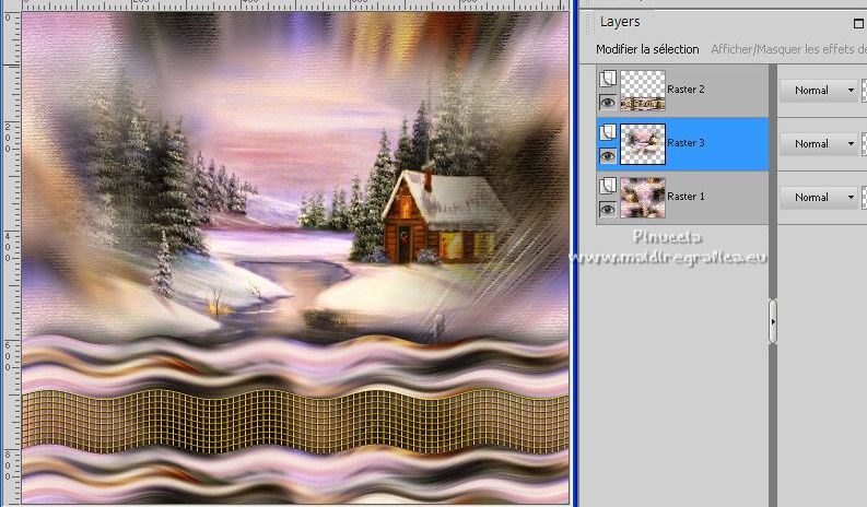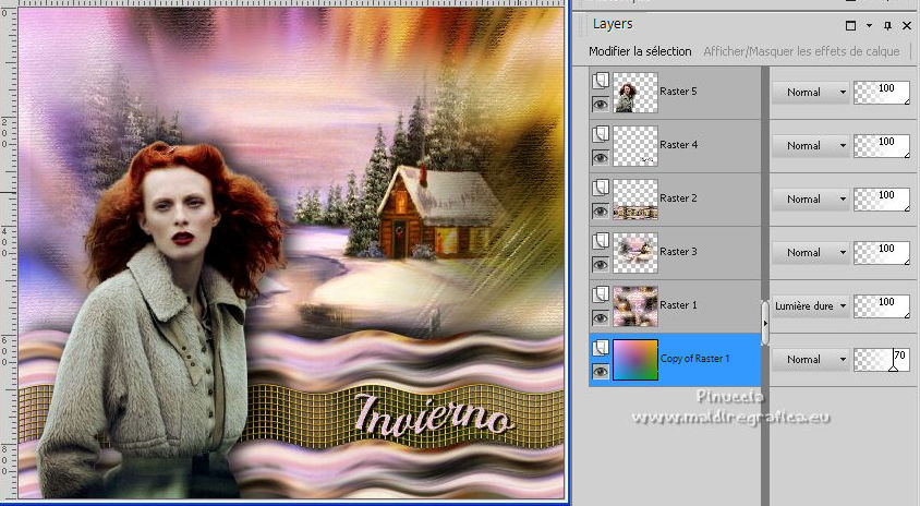 Change the Blend Mode of the layer Raster 1 to Hard Light, or to your liking.