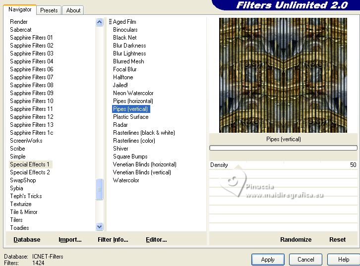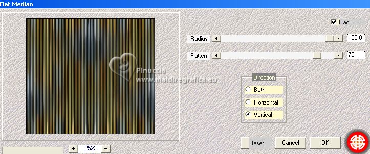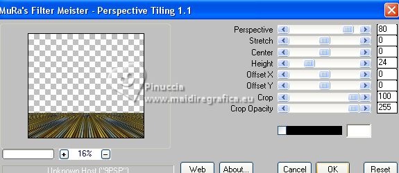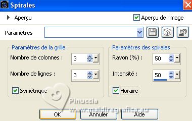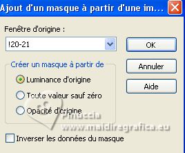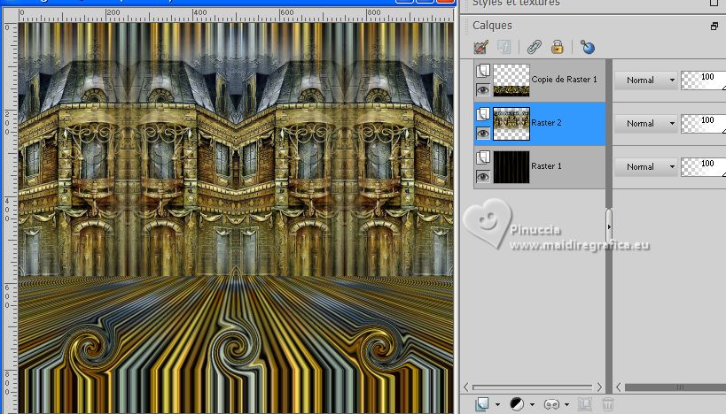 Le tutoriel a été créé avec PSP9 et traduit avec PSPX7, mais il peut également être exécuté avec les autres versions. Suivant la version utilisée, vous pouvez obtenir des résultats différents. Depuis la version X4, la fonction Image>Miroir a été remplacée par Image>Renverser horizontalement, et Image>Renverser avec Image>Renverser verticalement. Dans les versions X5 et X6, les fonctions ont été améliorées par la mise à disposition du menu Objets. Avec la nouvelle version X7, nous avons à nouveau Miroir/Retourner, mais avec nouvelles différences. Consulter, si vouz voulez, mes notes ici Certaines dénominations ont changées entre les versions de PSP. Les plus frequentes dénominations utilisées: ![]() traduction anglaise ici Vos versions ici![]() Nécessaire: ![]() Le matériel est de Luz Cristina. (ici les liens vers les sites des créateurs de tubes) ![]() consulter, si nécessaire, ma section de filtre ici Filters Unlimited 2.0 ici Mehdi 2 - Flat Median ici FM Tile Tools - Saturation Emboss, Blend Emboss ici Mura's Meister - Perspective Tiling ici Filter Factory Gallery M - Ambrosia ici Filtres Factory Gallery peuvent être utilisés seuls ou importés dans Filters Unlimited. voir comment le faire ici). Si un filtre est fourni avec cette icône, ![]() N'hésitez pas à changer le mode mélange des calques et leur opacité selon les couleurs utilisées. ![]() Ouvrir le masque dans PSP et le minimiser avec le reste du matériel. 1. Ouvrir une nouvelle image transparente 1000 x 900 pixels. 2. Sélections>Sélectionner tout. Ouvrir l'image en jpg Image JPG ![]() Édition>Copier. Revenir sur votre travail et Édition>Coller dans la sélection. Sélections>Désélectionner tout. 3. Effets>Effets d'image>Mosaïque sans jointures, par défaut. ![]() 4. Effets>Modules Externes>Filters Unlimited 2.0 - Special Effects 1 - Pipes Vertical. ![]() 5. Effets>Modules Externes>Mehdi 2 - Flat Median. ![]() 6. Effets>Modules Externes>FM Tile Tools - Saturation Emboss, par défaut. ![]() 7. Calques>Dupliquer. 8. Effets>Modules Externes>Mura's Meister - Perspective Tiling. ![]() 9. Effets>Effets d'image>Décalage. ![]() 10. Effets>Effets de distorsion>Spirales ![]() 11. Activer à nouveau l'image en jpg. Sur cette image: Calques>Nouveau calque de masque>A partir d'une image. Ouvrir le menu deroulant sous la fenêtre d'origine et vous verrez la liste des images ouvertes. Sélectionner le masque 20-21. ![]() Calques>Dupliquer, pour appliquer le masque deux fois. Calques>Fusionner>Fusionner le groupe. 12. Image>Redimensionner, 120%, redimensionner tous les calques coché. ![]() 13. Édition>Copier. vous pouvez fermer l'image sans enregistrer les modifications, ou enregistrer l'image comme nouvelle image en pspimage (File>Enregistrer sous...) Revenir sur votre travail et Édition>Coller comme nouveau calque. 14. Effets>Effets d'image>Décalage. ![]() 15. Calques>Dupliquer. Calques>Fusionner>Fusionner le calque de dessous. 16. Effets>Effets d'image>Mosaïque sans jointures. ![]() 17. Calques>Agencer>Déplacer vers le bas. ![]() 18. Calques>Fusionner>Calques visibles. 19. Réglage>Netteté>Netteté. 20. Calques>Nouveau calque raster. Calques>Agencer>Placer en bas de la pile. Remplir le calque avec n'importe quelle couleur.21. Effets>Modules Externes>Filters Unlimited 2.0 - Filter Factory Gallery M - Ambrosia, par défaut. ![]() 22. Effets>Effets d'image>Mosaïque sans jointures, par défaut. ![]() Réduire l'opacité de ce calque à 40%. 23. Vous positionner sur le calque Fusionné. Placer le calque en mode Lumière dure. ![]() 24. Ouvrir le tube de la femme Tube-LuzCristina ![]() Édition>Copier. Revenir sur votre travail et Édition>Coller comme nouveau calque. Déplacer le tube vers la droite.Effets>Effets 3D>Ombre portée. ![]() 25. Ouvrir le tube R11-Garden PotPlant 2013-145 ![]() Édition>Copier. Revenir sur votre travail et Édition>Coller comme nouveau calque. Déplacer le tube en bas à gauche.Effets>Effets 3D>Ombre portée, comme précédemment. 26. Ouvrir le tube Farole ![]() Édition>Copier. Revenir sur votre travail et Édition>Coller comme nouveau calque. Image>Redimensionner, à 80%, redimensionner tous les calques décoché. Déplacer le tube à droite.Effets>Effets 3D>Ombre portée, comme précédemment. 27. Image>Ajouter des bordures, 3 pixels, symétrique, couleur noire. Image>Ajouter des bordures, 2 pixels, symétrique, couleur #c8b052. Image>Ajouter des bordures, 55 pixels, symétrique, couleur noire. 28. Activer l'outil Baguette magique ![]() et cliquer dans le dernier bord pour le sélectionner. 29. Réglage>Ajouter/Supprimer du bruit>Ajouter du bruit. ![]() 30. Effets>Modules Externes>FM Tile Tools - Blend Emboss, par défaut. ![]() 31. Effets>Effets 3D>Biseautage intérieur. ![]() Sélections>Désélectionner tout. 32. Ouvrir le tube corner ![]() Édition>Copier. Revenir sur votre travail et Édition>Coller comme nouveau calque. Déplacer le tube dans le coin gauche.Calques>Dupliquer. Image>Miroir. Image>Renverser. 33. Ouvrir le texte Texto 2 ![]() Édition>Copier. Revenir sur votre travail et Édition>Coller comme nouveau calque. Déplacer le texte en bas.34. Calques>Fusionner>Calques visibles. Image>Redimensionner, à 85%, redimensionner tous les calques coché. 35. Signer votre travail et enregistrer en jpg. Pour les tubes de cette version merci Luz Cristina et Yvonne. ![]() ![]() Si vous avez des problèmes, ou des doutes, ou vous trouvez un link modifié, ou seulement pour me dire que ce tutoriel vous a plu, vous pouvez m'écrire. |