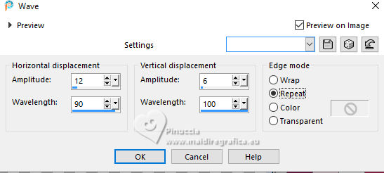 14. Effects>Distortion Effefts>Wave, same settings.