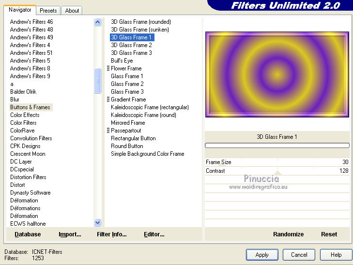 3. Effets>Modules Externes>Filters Unlimited 2.0 - Buttons &Frames - 3D Frame Glass 1.