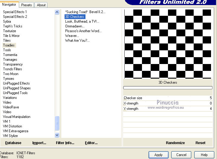 3. Effets>Modules Externes>Filters Unlimited 2.0 - Toadies - 3D Checkers.