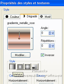 2. Placer en avant plan le dégradé et sélectionner le dégradé gradiente_metallic_rose, style Linéaire