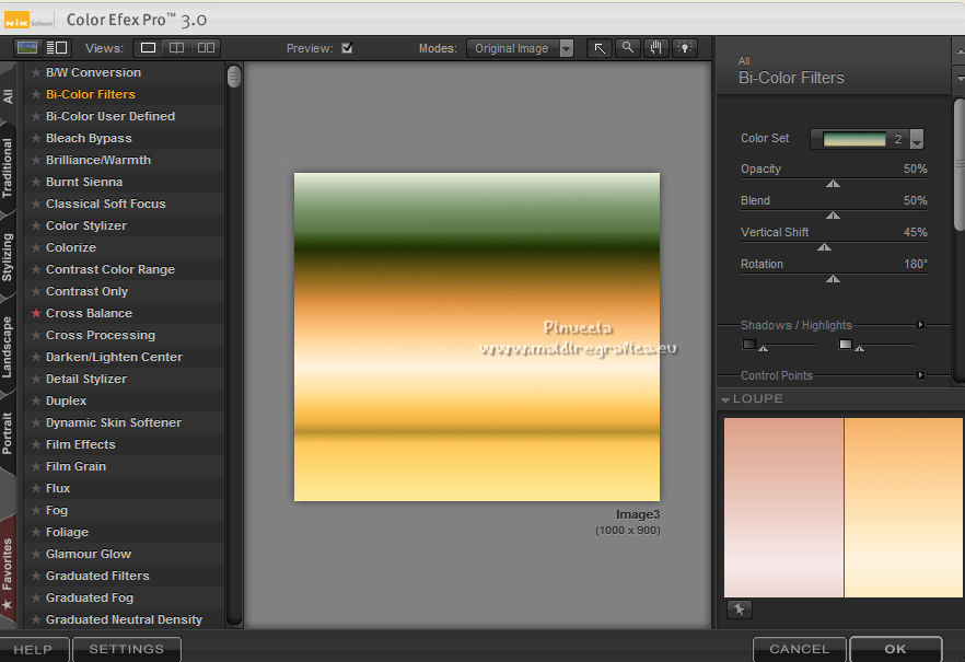 3. Effets>Modules Externes>Nik Software - Color Efex - Bi-Color Filters