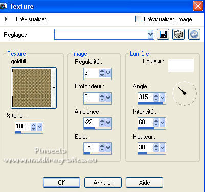 29. Effets>Effets de texture>Texture - sélectionner la texture goldfill