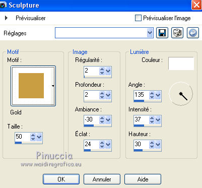 8. Effets>Effets de textures>Sculpture, sélectionner le motif Gold.
