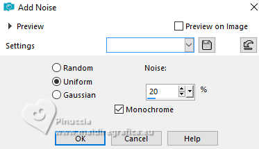 Adjust>Add/Remove Noise>Add Noise, same settings.