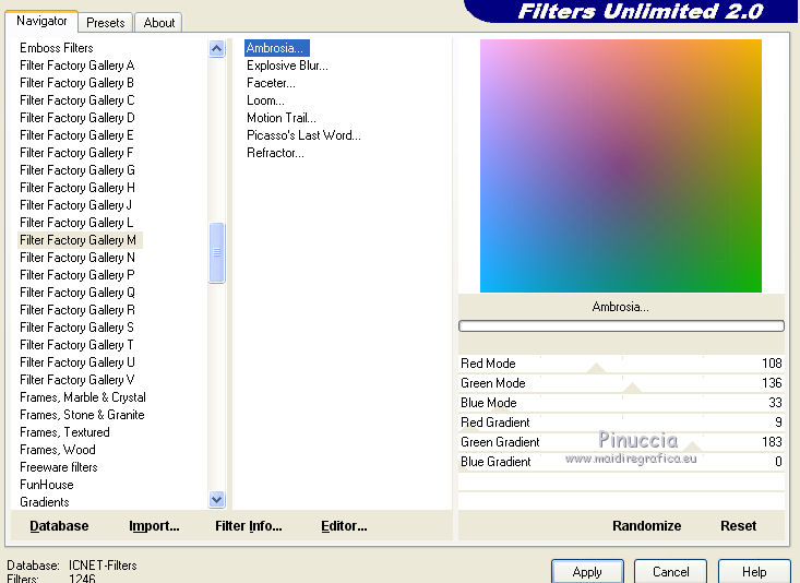 35. Effets>Modules Externes>Filter Factory Gallery M - Ambrosia, par défaut.