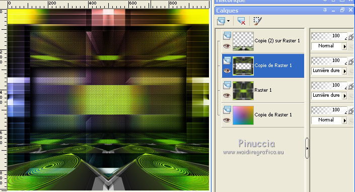 37. Placer les calques Raster 1 et Copie de Raster 1 en mode Lumière dure.