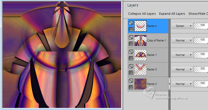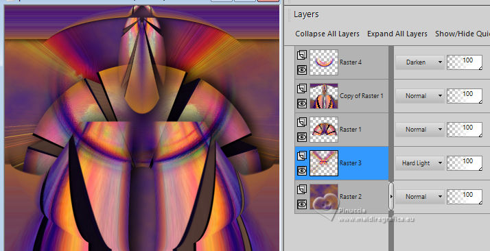 39. Change the Blend Mode of the layer Raster 3 to Hard Light.