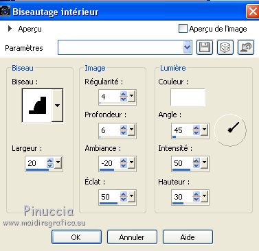 33.Effets>Effets 3D>Biseautage intérieur.