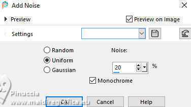 Adjust>Add/Remove Noise>Add Noise, same settings.