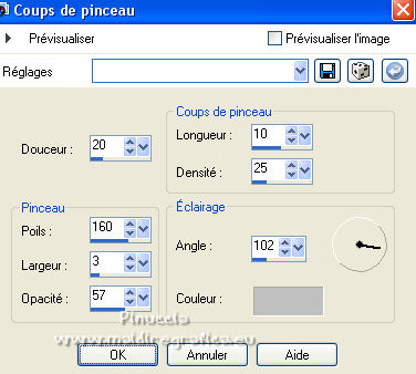 3. Effets>Effets de traits ou Effets Art Média>Coups de pinceau, couleur #c0c0c0.