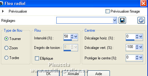14. Réglage>Flou>Flou radial, comme précédemment, mais Zoom coché
