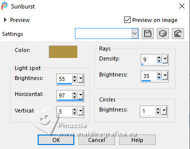 18. Effects>Illumination Effects>Sunburst - color #b19343