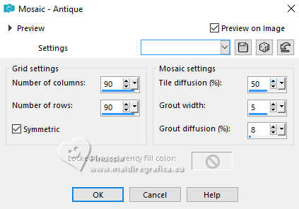 6. Effects>Texture Effects>Mosaic Antique.