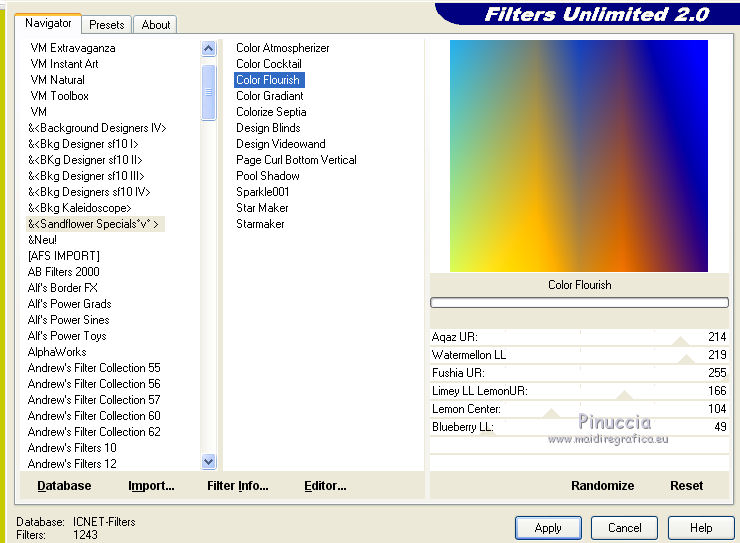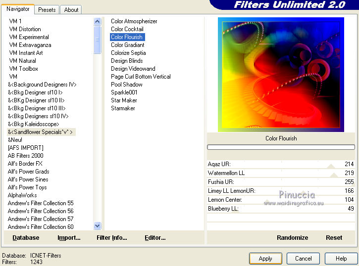 Effets>Modules Externes>Filters Unlimited 2.0 - &<Sandflower Specials"v"> - Color Flourish