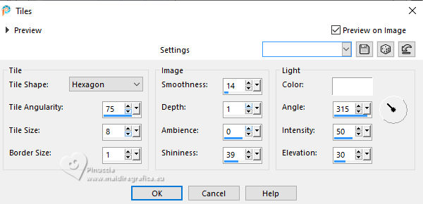 25. Effects>Plugins>FM Tile Tools - Saturation Emboss, default settings (optionnel).