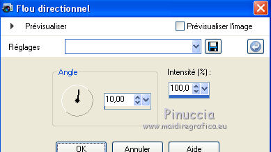 3. Réglage>Flou>Flou directionnel (ou Flou de mouvement) - 3 fois avec ces réglages.
