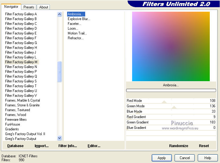 24. Effets>Modules Externes>Filter Factory Gallery M - Ambrosia, par défaut.