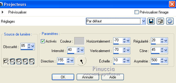 21. Effets>Effets d'éclairage>Projecteurs, par défaut.