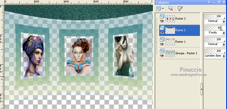 Pour mon exemple, j'ai placer le calque des cadres en mode Lumière dure.