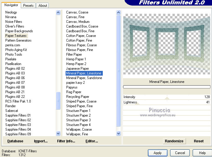 5. Effets>Modules Externes>Filters Unlimited 2.0 - Paper Textures - Mineral paper Limestone, par défaut.