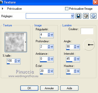 13. Effets>Effets de texture>Texture - sélectionner la texture Achtergrond, avec ces réglages.
