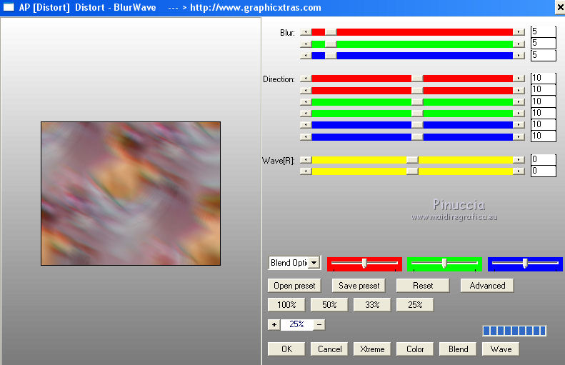5. Effets>Modules Externes>AP Distort - Blur Wave - 3 fois avec ces réglages