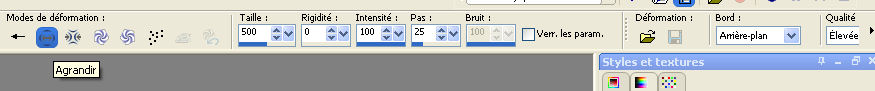 6. Activer l'outil Pinceau déformant avec ces réglages
