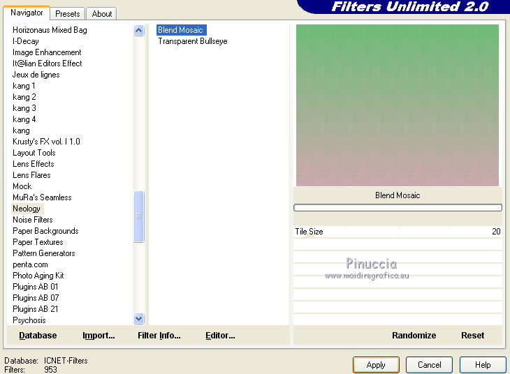 8. Effets>Modules Externes>Filters Unlimited 2.0 - Neology - Blend Mosaic.