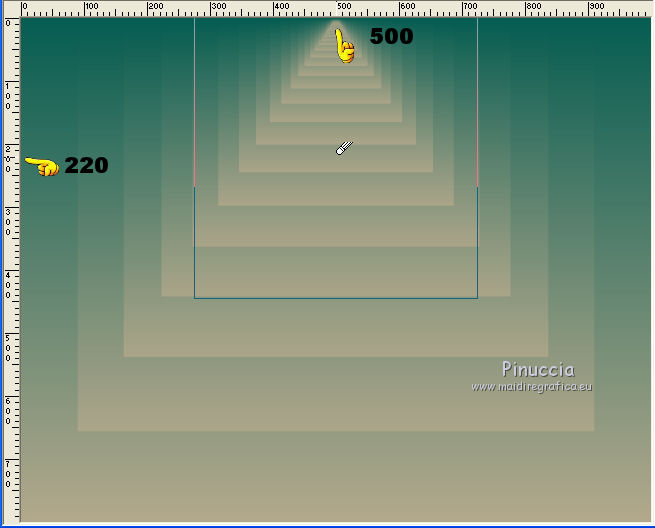 6. Placer la souris, comme ci-dessous, sur les coordonnées 500 horizontale et 220 verticale: