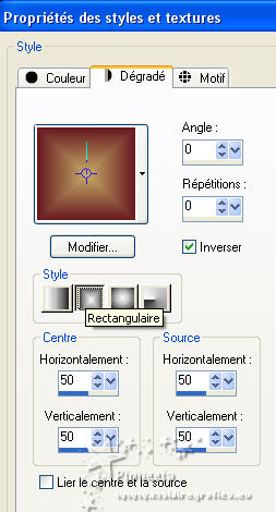 Préparer en avant plan un dégradé de premier plan/arrière plan, style Rectangulaire.
