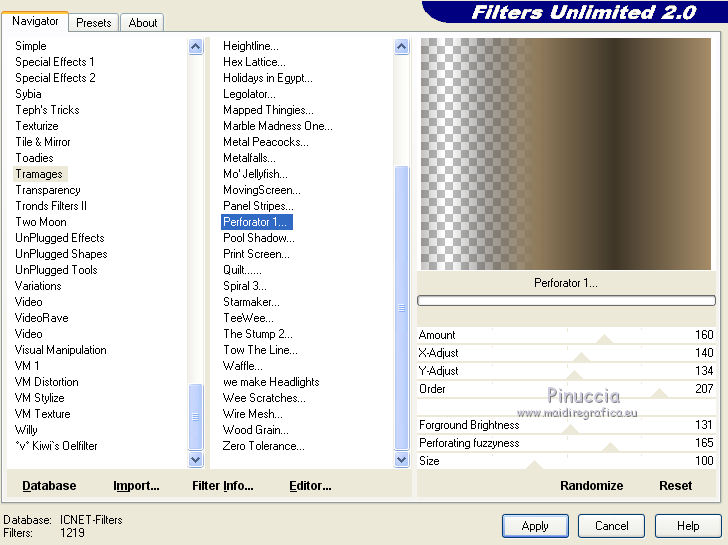 3. Effets>Modules Externes>Filters Unlimited 2.0 - Tramages - Perforator 1.