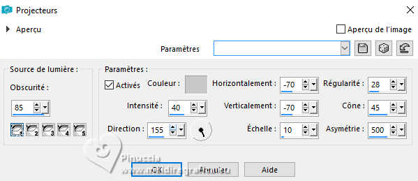 35. Effets>Effets d'éclairage>Projecteurs, par défaut.