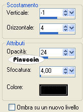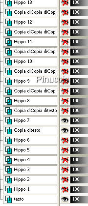 qui puoi trovare qualche risposta ai tuoi dubbi. Se l'argomento che ti interessa non è presente, ti prego di segnalarmelo. Questo tutorial è stato scritto con PSP 8, ma può essere eseguito anche con le altre versioni del programma. Occorrente: il font che ho usato: Pagan Poetry, il file hippo.psp e il tube bubble. Trovi tutto qui Ti servirà anche Animation Shop qui 1. Scompatta lo zip. Apri il font e minimizzalo nella tua area di lavoro. Lo troverai nella lista dei font disponibili quando ti servirà. Metti il tube bubble nella cartella Ornamenti di PSP. 2. Apri hippo.psp in Paint Shop Pro. Vedrai tutti i fotogrammi dell'animazione. Ogni fotogramma è rappresentato in ciascun livello. Lasciali aperti per il momento perchè ti servano da guida. 3. Attiva lo strumento Testo che puoi impostare come preferisci.I miei settaggi sono i seguenti: dimensione 60 pixels, pennellata 1, colore di primo piano #0B6C77, colore di sfondo #83E5F3: ![]() Livelli>Converti in livello raster. 4. Effetti>Effetti 3D>Smusso a incasso, con i seguenti settaggi. ![]() 5. Effetti>effetti 3D>sfalsa ombra, con i seguenti settaggi. ![]() 6. Sposta il testo in modo che si trovi al centro dei fotogrammi.Non occorre essere precisi. Va bene come capita. 7. Adesso nascondi tutti i livelli dell'hippo. Dovrai avere visibile soltanto il testo. Clicca con il tasto destro del mouse sul livello del testo e vai a Disponi>Porta sotto. 8. Rinomina questo livello "Testo". 9. In mezzo al testo dovrai aggiungere delle alghe, per dare un senso di profondità alla firma. Ma se non vuoi farlo, non importa. Puoi saltare questo passaggio. Attiva lo strumento Pennello , con i seguenti settaggi.![]() Imposta il colore di primo piano con #28A228. 10. Livelli>Nuovo livello raster, e approfitta della finestra del livello per rinominarlo Alghe. ![]() 11. Ingrandisci il testo con lo zoom o usando la rotellina del mouse, per vedere più comodamente quello che stai facendo.Traccia dei segni con il pennello che diano l'idea di erba, o alghe marine, dove preferisci. Io li ho messi in quattro punti del mio testo, come si vede nella schermata sotto: ![]() 12. Clicca con il tasto destro del mouse sul livello Alghe e Disponi>Porta in alto. Quindi nascondi il livello. Attiva il livello Testo. 13. Adesso diventa un po' complicato. Devi scoprire e quindi nascondere i livelli dell'hippo finchè non inizia il testo, e l'inizio del testo deve rimanere dietro l'ippo. Con il mio nome il punto è al livello hippo 7. Ma nel tuo caso, può variare, dipende dalla lunghezza del tuo testo. Eccoti un'immagine per mostrarti cosa significa: ![]() 14. Quando hai identificato questo livello, assicurati che sia visibile soltanto questo livello. Tutti gli altri livelli devono essere chiusi. Clicca con il tasto destro del mouse sul livello Testo e Livelli>Duplica. Trascina il duplicato proprio sotto il livello dell'hippo che è visibile, nel mio caso hippo 7. A questo punto chiudi il livello. 15. Duplica il livello Copia di testo e trascinalo sotto il successivo livello hippo. Ripeti questo passaggio per tutti i successivi livelli fino alla fine del testo. Ogni copia deve trovarsi sotto il livello dell'ippo. ![]() 16. Per il momento nascondi il livello del testo che si trova in fondo ai livelli. Quindi riapri il livello "Copia di testo" che si trova sotto il relativo livello hippo. Attiva lo strumento Gomma , e cancella tutto il testo che si trova davanti e sotto l'hippo.Deve rimanere soltanto il testo dietro l'hippo. ![]() Quando sei soddisfatto, tasto destro del mouse e Unisci>Unisci visibile. Quindi, nascondi il livello Uniti. 17. Attiva la successiva "copia di testo" e relativo livello "hippo", e cancella tutto il testo intorno all'hippo, tranne il testo sta dietro. Livelli>Unisci>Unisci visibile, e nascondi questo livello Uniti. 18. Continua in questo modo, sui successivi "Copia di testo" e relativo "Hippo" ripetendo il passo 17, finchè tutti i livelli sono uniti. 19. A questo punto dovrai aggiungere delle bollicine. Attiva il primo livello (che sia in fondo o in alto, non importa) dei livelli "Uniti". Attiva lo strumento Ornamento e seleziona il tube Bubble.Riduci la dimensione a 15. 20. Aggiungi alcune bollicine sul testo dietro all'hippo. Puoi, anche variare le dimensioni, come preferisci. 21. Ripeti questo passaggio su tutti i livelli uniti, sul testo immediatamente dietro l'hippo. 22. Adesso sei pronto per portare la tua firma in Animation Shop. 23. Nascondi tutti i livelli, tranne Alghe e Hippo 1. se non hai il livello delle alghe, avrai soltanto il livello hippo 1. 24. Modifica>Copia unione. Apri Animation Shop e vai a Modifica>Incolla>Incolla come nuova animazione. 25. Torna in PSP. Nascondi Hippo 1 e rendi visibile Hippo 2. 26. Modifica>Copia unione. Apri Animation Shop e vai a Modifica>Incolla>Incolla come nuova animazione. 27. Continua ripetendo il punto 26 con i successivi livelli Hippo, che poi Uniti, finchè non li hai copiati tutti in As. Per l'ultimo fotogramma lascia visibile soltanto il primo e l'ultimo livello (il livello del testo originale e il livello Alghe). Modifica>Copia Unione. In As: Modifica>Incolla>Incolla dopo il fotogramma corrente. 28. Quando hai finito in PSP, puoi salvare il tuo file in formato psp, nel caso qualcosa andasse storto e dovessi rifarlo. Quando hai salvato il file, puoi chiudere PSP. 29. Adesso in Animation Shop dovresti avere 25 fotogrammi. Puoi controllare il risultato della tua animazione cliccando su Visualizza ![]() Se vuoi seguire il mio esempio, dovrai ridurre un po' la velocità dell'animazione. Modifica>Seleziona tutto. Animazione>Proprietà fotogramma, e imposta la velocità a 15. ![]() Clicca sull'ultimo fotogramma. Soltanto questo deve essere selezionato e avere la cornice blu. Animazione>Proprietà fotogramma, e imposta la velocità a 500. 30. A questo punto dovrai eliminare lo spazio in eccesso. Attiva lo strumento Ritaglio: ![]() Clicca su Opzioni e seleziona Circonda l'area opace: ![]() clicca ok e poi Ri