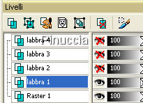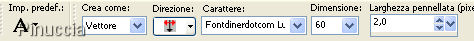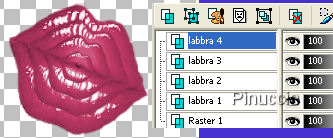 qui puoi trovare qualche risposta ai tuoi dubbi. Se l'argomento che ti interessa non è presente, ti prego di segnalarmelo. Questo tutorial è stato scritto con PSP 8, ma può essere eseguito anche con le altre versioni del programma. Occorrente: Filtro Eye Candy 4000 qui (facoltativo) Avrai bisogno anche del file delle labbra. Puoi provare anche a usare uno dei tuoi tubes o un'immagine diversa, se preferisci. Quella che ho usato per il tutorial è qui Per questa firma ho usato il font Fontdinerdotcom Huggable + Luvable, ma puoi scegliere altri font, se preferisci. font qui Ti servirà anche Animation Shop qui 1. Apri il tube lips.psp in Animation Shop. 2. Modifica>Copia. puoi copiare il file anche cliccando sull'immagine con il tasto destro del mouse 3. Apri Paint Shop Pro. Apri una nuova immagine 500 x 500 pixels. Può essere trasparente o no, non ha importanza per questo lavoro. Modifica>Incolla>Incolla come nuovo livello. 4. Torna in Animation Shop. Animazione>Ridimensiona animazione, e imposta la percentuale al 75%. ![]() Di nuovo: Modifica>Copia. Prima di tornare in PSP vai a Modifica>Annulla Ridimensiona animazione. ![]() Torna in PSP e vai a Modifica>Incolla>Incolla come nuovo livello. 5. Ripeti tutto il passo 4, ma riducendo al 50%. 6. Ripeti il passo 4, ma riducendo al 25%. 7. Puoi rinominare i livelli (dal basso in su), Labbra 1, Labbra 2, Labbra 3 e Labbra 4. Dovresti avere qualcosa di simile a questo: ![]() 8. Adesso togli la visibilità ai seguenti livelli: Labbra 2, Labbra 3 e Labbra 4 cliccando sull'occhio del livello, in modo che appaia la x rossa. ![]() 9. Attiva lo strumento Testo ,e aggiungi il tuo testo (assicurati di essere sul livello superiore). Puoi usare il font che preferisci. Ma per avere un risultato come il mio, questi sono i settaggi che ho usato: Dimensione 60 pixels, pennellata 2, colore di primo piano #7C2542, e colore di sfondo #CF5B81. ![]() Livelli>Converti in livello raster. 10. Effetti>Effetti 3D>Smusso a incasso, con i seguenti settaggi. ![]() 11. Se vuoi, puoi aggiungere Effetti>Plugins>Eye Candy 4000 - Gradient Glow, per dare al testo un effetto iridescente. Ma questo passaggio è facoltativo, e io non l'ho applicato. 12. Quando sei soddisfatto del tuo testo, attiva il livello Labbra 1 e duplicalo (Livelli>Duplica). Quindi chiudi la visibilità del livello della copia. 13. Attiva il livello Labbra 1 e abbassa l'opacità al 40%, come mostrato nella schermata: ![]() 14. Adesso chiudi tutti i livelli: Livelli>Visualizza>Nessuno. 15. Rendi visibili il livello di sfondo e il livello Labbra 4. ![]() Modifica>Copia Unione. Torna in Animation Shop e vai a Modifica>Incolla>Incolla come nuova animazione. Di nuovo in PSP. 16. Nascondi Labbra 4 e attiva Labbra 3. Modifica>Copia Unione. In As: Modifica>Incolla>Incolla dopo il fotogramma corrente. 17. Ripeti il passo 16, con il livello Labbra 2. E quindi con il livello Copia di Labbra 1. 18. Adesso con il livello Copia di labbra 1 attivo, clicca sul livello del testo in modo che sia visibile sopra le labbra. Modifica>Copia Unione. In AS: Modifica>Incolla>Incolla dopo il fotogramma corrente. 19. Nascondi "copia di Labbra 1" e attiva "Labbra 1". Modifica>Copia Unione. In Animation Shop: Modifica>Incolla>Incolla dopo il fotogramma corrente. 20. Per finire, nascondi "Labbra 1" in modo da avere visibile soltanto il testo. Modifica>Copia Unione. In Animation Shop: Modifica>Incolla>Incolla dopo il fotogramma corrente. 21. Con Paint Shop Pro hai finito. Ti consiglio di salvare il file in formato .psp prima di chiudere il programma, nel caso in Animation Shop qualcosa andasse storto. 22. In Animation Shop dovresti avere un'animazione composta da 7 fotogrammi delle labbra che formano un bacio facendo il tuo nome. 23. Dovrai ritagliare lo spazio eccedente. Clicca sull'icona del ritaglio: ![]() 24. Traccia una selezione intorno all'immagine (attenzione a non tagliare parti importanti). L'attivazione dello strumento renderà disponibile il menu dello strumento. Clicca su Ritaglia. ![]() 25. Clicca sul fotogramma 7. Soltanto questo deve avere la cornice blu. ![]() Animazione>Proprietà fotogramma, e imposta la velocità a 250. ![]() 26. Controlla il risultato cliccando su Visualizza , e salva in formato gif.Ecco l'esempio con il font Huggable: ![]() ![]() Se hai problemi o dubbi, o trovi un link non funzionante, o anche soltanto per un saluto, scrivimi. 26 Gennaio 2008 |
