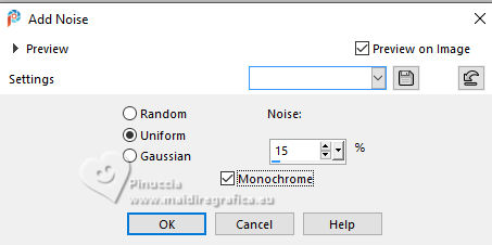 Adjust>Add/Remove Noise>Add Noise, same settings.