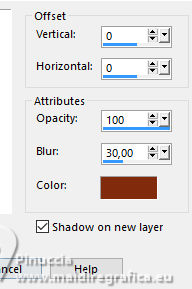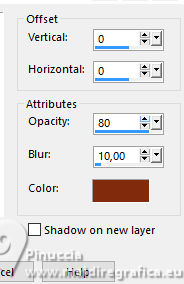 Effects>3D Effects>Drop Shadow - dark foreground color #812c0f