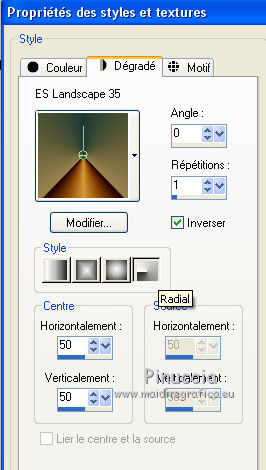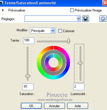 Pour traduire ce tutoriel j'ai utilisé CorelX12, mais il peut également être exécuté avec les autres versions. Suivant la version utilisée, vous pouvez obtenir des résultats différents. Depuis la version X4, la fonction Image>Miroir a été remplacée par Image>Renverser horizontalement, et Image>Renverser avec Image>Renverser verticalement . Dans les versions X5 et X6, les fonctions ont été améliorées par la mise à disposition du menu Objets. Avec la nouvelle version X7, nous avons encore Image>Miroir et Image>Renverser/Retourner, mais avec nouvelles différences. Voir les détails à ce sujet ici Certaines dénominations ont changées entre les versions de PSP. Les plus frequentes dénominations utilisées: ![]() Vos versions ici Nécessaire pour réaliser ce tutoriel: Matériel ici Merci pour le tube Luz Cristina et pour le masque Ket. (ici les liens vers les sites des créateurs de tubes) Modules Externes: consulter, si nécessaire, ma section des filtres ici Filters Unlimited 2.0 ici Graphics Plus - Horizontal Mirror ici AP Lines - Lines SilverLining ici Carolaine and Sensibility - CS-LDots ici AAA Filters - Custom ici Mura's Seamless - Emboss at Alpha ici Filtres Graphics Plus et Mura's Seamless peuvent être utilisés seuls ou importés dans Filters Unlimited. voir comment le faire ici). Si un filtre est fourni avec cette icône, ![]() en fonction des couleurs utilisées, vous pouvez changer le mode mélange et l'opacité des calques. Placer le dégradé dans le dossier Dégradés. Ouvrir les masques dans PSP et les minimiser avec le reste du matériel. 1. Placer en avant plan le dégrade ES-Landscape 35, style Radial. ![]() Placer en arrière plan la couleur claire #929292. ![]() Ouvrir une nouvelle image transparente 1000 x 700 pixels. Remplir l'image transparente du dégradé.2. Réglage>Teinte et Saturation>Teinte/Saturation/Luminosité. ![]() 3. Effets>Modules Externes>Graphics Plus - Horizontal Mirror. ![]() 4. Calques>Dupliquer. Image>Renverser. Placer le calque en mode Recouvrement. 5. Calques>Nouveau calque de masque>A partir d'une image. Ouvrir le menu deroulant sous la fenêtre d'origine et vous verrez la liste des images ouvertes. Sélectionner le masque ket_mask. ![]() Calques>Fusionner>Fusionner le groupe. 6. Effets>Modules Externes>Carolaine and Sensibility - CS-LDots. ![]() 7. Effets>Modules Externes>AP Lines - Lines SilverLining. ![]() 8. Vous positionner sur le calque Raster 1. Réglage>Ajouter/Supprimer du bruit>Ajouter du bruit. ![]() 9. Calques>Nouveau calque raster. Remplir avec la couleur claire d'arrière plan #929292.Calques>Agencer>Placer en haut de la pile. 10. Calques>Nouveau calque de masque>A partir d'une image. Ouvrir le menu deroulant sous la fenêtre d'origine et sélectionner le masque maskflorlateral. ![]() Calques>Fusionner>Fusionner le groupe. Calques>Dupliquer. Image>Renverser. Image>Miroir. Calques>Fusionner>Fusionner le calque de dessous. 11. Effets>Modules Externes>Mura's Seamless - Emboss at Alpha, par défaut. ![]() 12. Effets>Effets 3D>Ombre portée, couleur noire (optionnel). ![]() Vous devriez avoir ce-ci ![]() si vous utilisez des couleurs différentes, vous êtes libre de jouer avec les modes mélanges et les opacités. Calques>Fusionner>Tous. 13. Image>Ajouter des bordures, 1 pixel, symétrique, couleur noire. Image>Ajouter des bordures, 2 pixels, symétrique, couleur claire #929292. Image>Ajouter des bordures, 1 pixel, symétrique, couleur noire. 14. Sélections>Sélectionner tout. Édition>Copier. 15. Image>Ajouter des bordures, 50 pixels, symétrique, couleur blanche. Sélections>Inverser. Édition>Coller dans la sélection. 16. Réglage>Flou>Flou directionnel ou Flou de mouvement. ![]() 17. Effets>Effets de réflexion>Miroir rotatif, par défaut. ![]() Réglage>Netteté>Davantage de netteté. 18. Effets>Effets 3D>Ombre portée, couleur noire. ![]() Sélections>Désélectionner tout. 19. Ouvrir le tube de Luz Cristina - Édition>Copier. Revenir sur votre travail et Édition>Coller comme nouveau calque. Effets>Effets 3D>Ombre portée, à choix. 20. Image>Ajouter des bordures, 1 pixel, symétrique, couleur noire. 21. Signer votre travail sur un nouveau calque. Calques>Fusionner>Tous. 22. Effets>Modules Externes>AAA Filters - Custom. Cliquer sur Sharp et ok. ![]() 23. Image>Redimensionner, 1000 pixels de largeur, redimensionner tous les calques coché. Enregistrer en jpg. ![]() Si vous avez des problèmes, ou des doutes, ou vous trouvez un link modifié, ou seulement pour me dire que ce tutoriel vous a plu, vous pouvez m'écrire. 10 Juin 2019 |