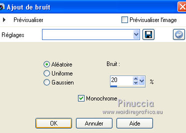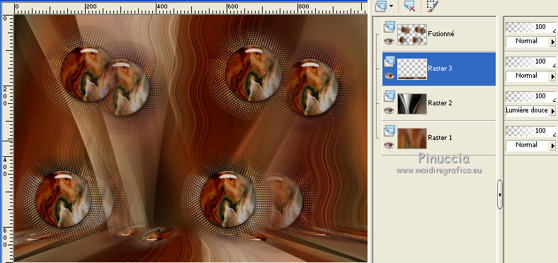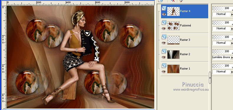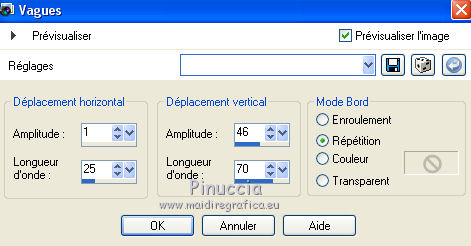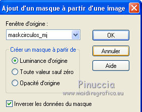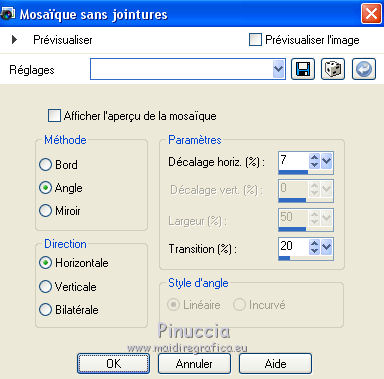 Pour traduire ce tutoriel j'ai utilisé CorelX17, mais il peut également être exécuté avec les autres versions. Suivant la version utilisée, vous pouvez obtenir des résultats différents. Depuis la version X4, la fonction Image>Miroir a été remplacée par Image>Renverser horizontalement, et Image>Renverser avec Image>Renverser verticalement . Dans les versions X5 et X6, les fonctions ont été améliorées par la mise à disposition du menu Objets. Avec la nouvelle version X7, nous avons encore Image>Miroir et Image>Renverser/Retourner, mais avec nouvelles différences. Voir les détails à ce sujet ici Certaines dénominations ont changées entre les versions de PSP. Les plus frequentes dénominations utilisées: ![]() Vos versions iciNécessaire pour réaliser ce tutoriel: Matériel ici Merci pour le tube Nicky. Le reste du matériel est de Maria José. (ici les liens vers les sites des créateurs de tubes) Modules Externes: consulter, si nécessaire, ma section des filtres ici Filters Unlimited 2.0 ici Simple - Top Left Mirror ici Mehdi2 - Flat Median ici Alien Skin Eye Candy 5 Impact - Glass ici Mura's Meister - Perspective Tiling ici Mura's Seamless - Emboss at Alpha ici Filtres Mura's Seamless et Simple peuvent être utilisés seuls ou importés dans Filters Unlimited. voir comment le faire ici). Si un filtre est fourni avec cette icône, ![]() en fonction des couleurs utilisées, vous pouvez changer le mode mélange et l'opacité des calques. Placer le preset En cliquant sur le preset une ou deux fois (selon vos réglages) automatiquement il se placera directement dans le dossier Settings de Alien Skin Eye Candy. pourquoi un ou deux clic voir ici Placer le sélections dans le dossier Sélections. Ouvrir le masque dans PSP et le minimiser avec le reste du matériel. 1. Ouvrir une nouvelle imae transparente 1000 x 700 pixels. Sélections>Sélectionner tout. 2. Ouvrir le graphique marmore1 - Édition>Copier. Revenir sur votre travail et Édition>Coller dans la sélection. Sélections>Désélectionner tout. 3. Calques>Nouveau calque de masque>A partir d'une image. Ouvrir le menu deroulant sous la fenêtre d'origine et vous verrez la liste des images ouvertes. Sélectionner le masque maskcirculos_mj. ![]() Calques>Fusionner>Fusionner le groupe. 4. Effets>Modules Externes>Mura's Seamless - Emboss at Alpha, par défaut. ![]() 5. Sélections>Charger/Enregistrer une sélection>Charger à partir du disque. Chercher et cherger la sélection amusement_mj. ![]() 6. Calques>Nouveau calque raster. Édition>Coller dans la sélection (l'image marmore1 est toujours en mémoire). 7. Effets>Modules Externes>Alien Skin Eye Candy 5 Impact - Glass. Sélectionner le preset glass_majo et ok. ![]() Sélections>Désélectionner tout. 8. Calques>Dupliquer - 3 fois. Positionner bien les copies dans les autres cercles.![]() Calques>Fusionner>Calques visibles. 9. Effets>Effets 3D>Ombre portée, couleur noire. ![]() 10. Effets>Effets d'image>Mosaïque sans jointures. ![]() Calques>Nouveau calque raster. Calques>Agencer>Déplacer vers le bas. 11. Sélections>Sélectionner tout. Édition>Coller dans la sélection (l'image marmore1 est toujours en mémoire). Sélections>Désélectionner tout. 12. Effets>Effets d'image>Mosaïque sans jointures. ![]() 13. Réglage>Flou>Flou gaussien - rayon 30. ![]() 14. Réglage>Ajouter/Supprimer du bruit>Ajouter du bruit. ![]() 15. Effets>Modules Externes>Mehdi 2 - Flat Median. ![]() 16. Effets>Effets de distorsion>Vagues. ![]() 17. Calques>Nouveau calque raster. Sélections>Sélectionner tout. Ouvrir l'image graficonew3 - Édition>Copier. Revenir sur votre travail et Édition>Coller dans la sélection. Placer le calque en mode Lumière douce. Sélections>Désélectionner tout. 18. Vous positionner sur le calque du haut de la pile (Fusionné). Édition>Spéciale>Copier avec fusion. 19. Édition>Coller comme nouveau calque. Image>Renverser. Image>Miroir. 20. Effets>Modules Externes>Mura's Meister - Perspective Tiling. ![]() 21. Sélections>Charger/Enregistrer une sélection>Charger à partir du disque. Chercher et charger la sélection amusement_2_mj ![]() Presser +/- 10 fois CANC sur le clavier ![]() Sélections>Désélectionner tout. Calques>Agencer>Déplacer vers le bas. ![]() 22. Vous positionner sur le calque du haut de la pile. Ouvrir le tube de la femme - Édition>Copier. Revenir sur votre travail et Édition>Coller comme nouveau calque. Image>Redimensionner, à 80%, redimensionner tous les calques décoché. Image>Miroir. Positionner bien le tube.Effets>Effets 3D>Ombre portée, à choix. La tag et les calques (adapter Modes mélange et opacitées à votre convenance) ![]() 23. Vous positionner sur le calque Raster 1. Édition>Copier. Édition>Coller comme nouvelle image (si vous voulez, pour précaution, minimizer cette image. Revenir sur votre travail. Calques>Fusionner>Tous. 24. Image>Ajouter des bordures, 1 pixel, symétrique, couleur foncée de votre image. 25. Sélections>Sélectionner tout. Image>Ajouter des bordures, 50 pixels, symétrique, couleur blanche. Édition>Copier. 26. Sélections>Inverser. Édition>Coller dans la sélection. 27. Effets>Effets de réflexion>Miroir rotatif, par défaut. ![]() 28. Effets>Modules Externes>Simple - Top Left Mirror. ![]() 29. Réglage>Netteté>Davantage de netteté. Effets>Effets 3D>Ombre portée, couleur noire. ![]() 30. Sélections> Inverser. Sélections>Modifier>Agrandir - 10 pixels. Répéter Ombre portée comme précédemment. 31. Sélections>Modifier>Agrandir - 10 pixels. Répéter Ombre portée, comme précédemment. Sélections>Désélectionner tout. Image>Ajouter des bordures, 1 pixel, symétrique, couleur foncée. 32. Signer votre travail sur un nouveau calque. Calques>Fusionner>Tous. Image>Redimensionner - 1000 pixels, redimensionner tous les calques coché. Enregistrer en jpg. Version avec tube de Luz Cristina ![]() Vos versions ici![]() Si vous avez des problèmes, ou des doutes, ou vous trouvez un link modifi