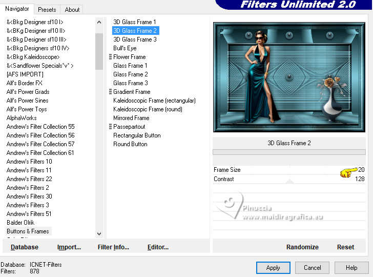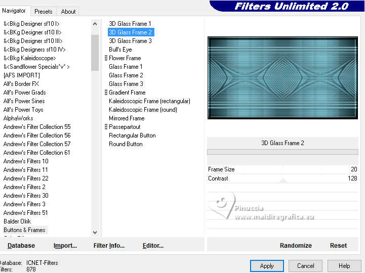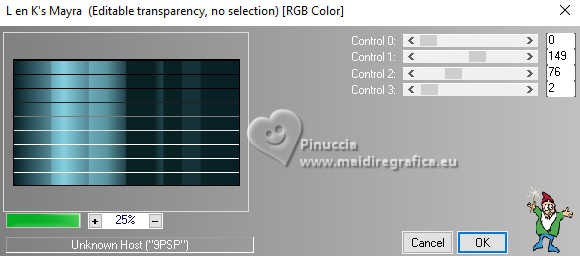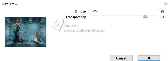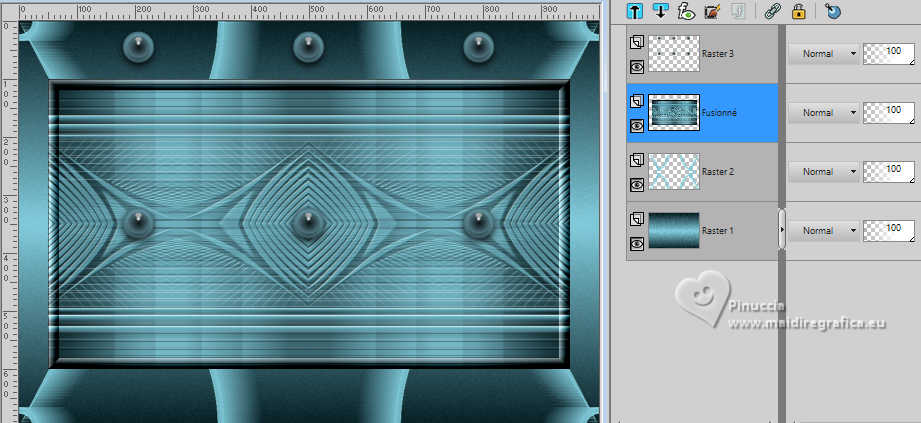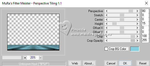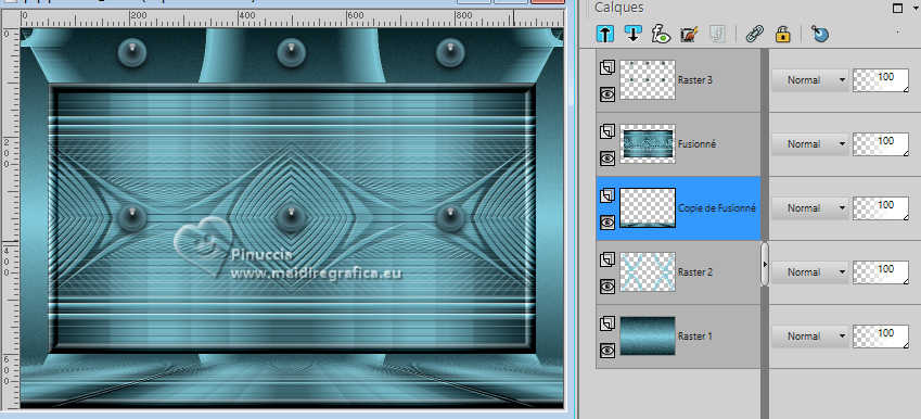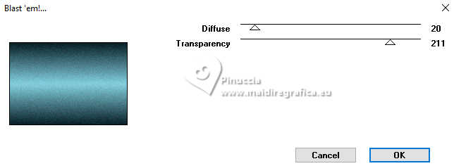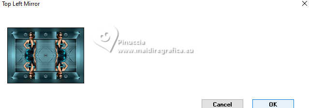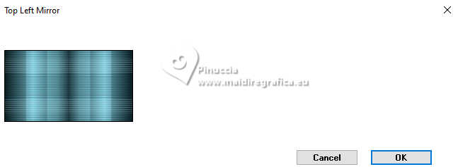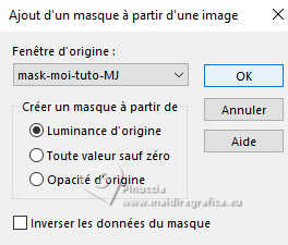 Pour traduire ce tutoriel j'ai utilisé PSPX9 et PSP2020, mais il peut également être exécuté avec les autres versions. Suivant la version utilisée, vous pouvez obtenir des résultats différents. Depuis la version X4, la fonction Image>Miroir a été remplacée par Image>Renverser horizontalement, et Image>Renverser avec Image>Renverser verticalement . Dans les versions X5 et X6, les fonctions ont été améliorées par la mise à disposition du menu Objets. Avec la nouvelle version X7, nous avons encore Image>Miroir et Image>Renverser/Retourner, mais avec nouvelles différences. Voir les détails à ce sujet ici Certaines dénominations ont changées entre les versions de PSP. Les plus frequentes dénominations utilisées: ![]() English translation here Vos versions ici![]() Nécessaire pour réaliser ce tutoriel: ![]() (ici les liens vers les sites des créateurs du matériel) ![]() consulter, si nécessaire, ma section des filtres ici Filters Unlimited 2.0 ici Mura's Seamless - Emboss at Alpha ici Mehdi - Sorting Tiles ici L&K's - L&K's Mayra ici Simple - Top Left Mirror ici Toadies - What are you, Blast'em ici Mura's Meister - Perspective Tiling ici Filtres Mura's Seamless, Simple et Toadies peuvent être utilisés seuls ou importés dans Filters Unlimited. voir comment le faire ici. Si un filtre est fourni avec cette icône, ![]() en fonction des couleurs utilisées, vous pouvez changer le mode mélange et l'opacité des calques. Dans les plus récentes versions de PSP, vous ne trouvez pas le dégradé d'avant plan/arriére plan ou Corel_06_029. Vous pouvez utiliser le dégradé des versions antérieures. Ici le dossier Dégradés de CorelX. ![]() Ouvrir le masque dans PSP et le minimiser avec le reste du matériel. Placer en avant plan la couleur #092025, et en arrière plan la couleur #85d0e1. ![]() Préparer en avant plan un dégradé de premier plan/arrière plan, style Linéaire. ![]() 1. Ouvrir une nouvelle image transparente 900 x 500 pixels. Remplir l'image transparente avec la couleur claire d'arrière plan.2. Calques>Nouveau calque de masque>A partir d'une image. Ouvrir le menu deroulant sous la fenêtre d'origine et vous verrez la liste des images ouvertes. Sélectionner le masque mask-moi-tuto-MJ. ![]() Calques>Fusionner>Fusionner le groupe. 3. Effets>Modules Externes>Mura's Seamless - Emboss at Alpha, par défaut. ![]() 4. Effets>Effets d'image>Mosaïque sans jointures. ![]() 5. Réglage>Netteté>Netteté. 6. Effets>Effets 3D>Ombre portée, couleur noire. ![]() 7. Calques>Nouveau calque raster. Remplir le calque du dégradé.Calques>Agencer>Placer en bas de la pile. 8. Effets>Modules Externes>Mehdi - Sorting Tiles. ![]() 9. Effets>Modules Externes>L&K's - L&K's Mayra, par défaut. ![]() 10. Effets>Effets de réflexion>Miroir rotatif. ![]() 11. Effets>Modules Externes>Simple - Top Left Mirror. ![]() 12. Effets>Modules Externes>Toadies - What Are you, par défaut. ![]() Calques>Fusionner>Calques visibles. 13. Effets>Modules Externes>Filters Unlimited 2.0 - Button & Frames - 3D Glass Frame 2. ![]() 14. Image>Taille du support - 1000 x 700 pixels. ![]() 15. Calques>Nouveau calque raster. Calques>Agencer>Placer en bas de la pile. Remplir le calque du dégradé.16. Effets>Modules Externes>Toadies - Blast'em!, par défaut. ![]() 17. Ouvrir deco-blue-MJ ![]() Édition>Copier. Revenir sur votre travail et Édition>Coller comme nouveau calque. 18. Ouvrir deco-azul-MJ ![]() Édition>Copier. Revenir sur votre travail et Édition>Coller comme nouveau calque. Calques>Agencer>Placer en haut de la pile. 19. Touche K pour activer l'outil Sélecteur ![]() garder Position horiz.: 161,00 et placer Position vert.: 6,00. ![]() Touche M pour désélectionner l'outil. 20. Vous positionner sur le calque Fusionné. ![]() Calques>Dupliquer. 21. Effets>Modules Externes>Mura's Meister - Perspective Tiling. ![]() 22. Activer l'outil Baguette magique , progressivité 30,et cliquer dans la partie transparente pour la sélectionner. Presser +/-10 fois CANC sur le clavier .Sélections>Désélectionner tout. ne pas oublier de placer à nouveau la progressivité à 0 Calques>Agencer>Déplacer vers le bas. La tag et les calques - adapter Mode mélange et opacité à votre goût. ![]() 23. Vous positionner sur le calque du haut de la pile. Ouvrir le tube image-AI-tube-MJ ![]() Édition>Copier. Revenir sur votre travail et Édition>Coller comme nouveau calque. Image>Redimensionner, à 68%, redimensionner tous les calques décoché. Déplacer le tube à gaucheEffets>Effets 3D>Ombre portée, à choix. 24. Ouvrir le déco deco-vase-AI-tube-MJ ![]() Édition>Copier. Revenir sur votre travail et Édition>Coller comme nouveau calque. Image>Redimensionner, à 50%, redimensionner tous les calques décoché. Déplacer le tube en bas à droite.Effets>Effets 3D>Ombre portée, à choix. 25. Image>Ajouter des bordures, 1 pixel, symétrique, couleur foncée. 26. Sélections>Sélectionner tout. Édition>Copier Image>Ajouter des bordures, 50 pixels, symétrique, couleur blanche. 27. Sélections>Inverser. Édition>Coller dans la sélection (image de l'étape 26) 28. Réglage>Flou>Flou gaussien - rayon 35. ![]() 29. Effets>Modules Externes>Toadies - Blast'em, par défaut. ![]() 30. Effets>Modules Externes>Simple - Top Left Mirror. ![]() 31. Effets>Modules Externes>Filters Unlimited 2.0 - Buttons & Frames - 3D Glass Frame 2, comme précédemment. ![]() 32. Effets>Effets 3D>Ombre portée, couleur noire. ![]() Sélections>Désélectionner tout. 33. Signer votre travail. Image>Ajouter des bordures, 1 pixel, symétrique, couleur foncée. 34. Image>Redimensionner, 1000 pixels de largeur, redimensionner tous les calques coché. Enregistrer en jpg. Pour les tubes de ces versions merci Luz Cristina et Nena Silva ![]() Suizabella ![]() ![]() Si vous avez des problèmes, ou des doutes, ou vous trouvez un link modifié, ou seulement pour me dire que ce tutoriel vous a plu, vous pouvez m'écrire. |