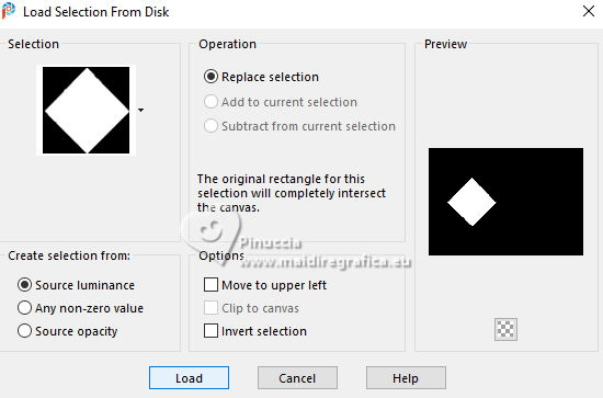 21. Selections>Load/Save Selection>Load Selection from Disk.