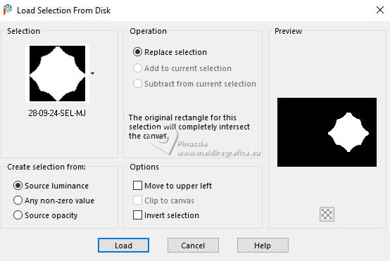 15. Selections>Load/Save Selection>Load Selection from Disk.