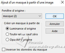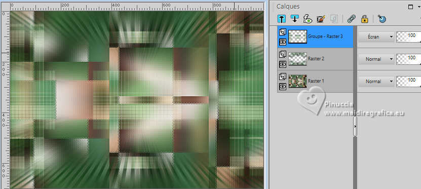 Pour traduire ce tutoriel j'ai utilisé PSPX9 et PSP2020, mais il peut également être exécuté avec les autres versions. Suivant la version utilisée, vous pouvez obtenir des résultats différents. Depuis la version X4, la fonction Image>Miroir a été remplacée par Image>Renverser horizontalement, et Image>Renverser avec Image>Renverser verticalement . Dans les versions X5 et X6, les fonctions ont été améliorées par la mise à disposition du menu Objets. Avec la nouvelle version X7, nous avons encore Image>Miroir et Image>Renverser/Retourner, mais avec nouvelles différences. Voir les détails à ce sujet ici Certaines dénominations ont changées entre les versions de PSP. Les plus frequentes dénominations utilisées: ![]() English translation here Vos versions ici![]() Nécessaire pour réaliser ce tutoriel: ![]() Le matériel est de Maria José (ici les liens vers les sites des créateurs du matériel) ![]() consulter, si nécessaire, ma section des filtres ici Filters Unlimited 2.0 ici &<Bkg Designer sf10II> - FH Patchwork (à importer dans Unlimited) ici Mura's Seamless - Emboss at Alpha ici VM Distortion - Flipper, Tile a GoGo ici L&K's - L&K's Mayra ici Mura's Meister - Perspective Tiling ici Filter Factory Gallery J - Drink to me ici Filtres Mura's Seamless, VM Distortion et Factory Gallery peuvent être utilisés seuls ou importés dans Filters Unlimited. voir comment le faire ici). Si un filtre est fourni avec cette icône, ![]() en fonction des couleurs utilisées, vous pouvez changer le mode mélange et l'opacité des calques. Dans les plus récentes versions de PSP, vous ne trouvez pas le dégradé d'avant plan/arriére plan ou Corel_06_029. Vous pouvez utiliser le dégradé des versions antérieures. Ici le dossier Dégradés de CorelX. ![]() Ouvrir le masque dans PSP et le minimiser avec le reste du matériel. Placer en avant plan la couleur #9dbd83 et en arrière plan la couleur #1f5524. ![]() Préparer en avant plan un dégradé de premier plan/arrière plan, style Linéaire. ![]() 1. Ouvrir une nouvelle image transparente 1000 x 700 pixels. Remplir l'image transparente avec la couleur foncée du dégradé.2. Sélections>Sélectionner tout. Ouvrir le tube principal tube-AI-MJ ![]() Effacer le watermark. Édition>Copier et minimiser le tube. Revenir sur votre travail et Édition>Coller dans la sélection. Sélections>Désélectionner tout. 3. Effets>Effets d'image>Mosaïque sans jointures, par défaut. ![]() 4. Réglage>Flou>Flou gaussien - rayon 25. ![]() 5. Effets>Modules Externes>VM Distortion - Flipper, par défaut. ![]() 6. Effets>Modules Externes>VM Distortion - Tiles a GoGo. ![]() 7. Effets>Modules Externes>Filters Unlimited 2.0 - Tile & Mirror - Mirror (vertical). ![]() 8. Effets>Modules Externes>Filters Unlimited 2.0 - &<Bkg Designer sf10II> - FH PatchWork. ![]() 9. Réglage>Netteté>Davantage de netteté. 10. Ouvrir deco-isadora-MJ ![]() Édition>Copier. Revenir sur votre travail et Édition>Coller comme nouveau calque. 11. Calques>Nouveau calque raster. Placer en avant plan la Couleur. Remplir le calque avec la couleur claire d'avant plan.12. Calques>Nouveau calque de masque>A partir d'une image. Ouvrir le menu deroulant sous la fenêtre d'origine et vous verrez la liste des images ouvertes. Sélectionner le masque masque(2) ![]() Calques>Fusionner>Fusionner le groupe. 13. Effets>Modules Externes>Mura's Seamless - Emboss at Alpha, par défaut. ![]() 14. Effets>Modules Externes>L&L's - L&K's Mayra ![]() 15. Image>Pivoter vers la gauche ![]() Répéter Effets>Modules Externes>L&L's - L&K's Mayra ![]() Image>Pivoter vers la droite. ![]() Placer le calque en mode Écran. ![]() 16. Édition>Copie Spéciale>Copier avec fusion. Édition>Coller comme nouveau calque. 17. Effets>Modules Externes>Mura's Meister - Perspective Tiling. ![]() 18. Activer l'outil Baguette magique , tolérance 0 et progressivité 70,et cliquer dans la partie transparente pour la sélectionner. Presser 10 fois CANC sur le clavier ![]() Sélections>Désélectionner tout. Ne pas oublier de placer à nouveau la progressivité à 0. 19. Ouvrir le misted misted-isadora-MJ ![]() Édition>Copier. Revenir sur votre travail et Édition>Coller comme nouveau calque. Réduire l'opacité de ce calque +/-89%, selon le misted utilisé. 20. Ouvrir deco-1-isadora-MJ ![]() Édition>Copier. Revenir sur votre travail et Édition>Coller comme nouveau calque. Placer le calque en mode Écran. 21. Ouvrir deco-2-verde-MJ ![]() Édition>Copier. Revenir sur votre travail et Édition>Coller comme nouveau calque. 22. Activer à nouveau le tube de la femme tube-AI-MJ Édition>Copier. Revenir sur votre travail et Édition>Coller comme nouveau calque. Image>Redimensionner, à 95%, redimensionner tous les calques décoché. Effets>Effets 3D>Ombre portée, à choix. La tag et les calques - adapter Mode mélange et opacité selon vos couleurs. ![]() 23. Image>Ajouter des bordures, 1 pixel, symétrique, couleur foncée. Image>Ajouter des bordures, 10 pixels, symétrique, couleur claire. Image>Ajouter des bordures, 1 pixel, symétrique, couleur foncée. 24. Sélections>Sélectionner tout. Édition>Copier Image>Ajouter des bordures, 50 pixels, symétrique, couleur blanche. Sélections>Inverser. 25. Édition>Coller dans la sélection (l'image de l'étape 24). 26. Réglage>Flou>Flou gaussien - rayon 30 ![]() Sélections>Flottante. 27. Effets>Modules Externes>Filter Factory Gallery J - Drink to Me, par défaut. ![]() 28. Effets>Effets de bords>Dilater. Effets>Effets de bords>Accentuer. 29. Effets>Effets 3D>Ombre portée, couleur foncée. ![]() Sélections>Désélectionner tout. 30. Signer votre travail sur un nouveau calque. Image>Ajouter des bordures, 1 pixel, symétrique, couleur foncée. 31. Image>Redimensionner, 1000 pixels de largeur, redimensionner tous les calques coché. Enregistrer en jpg. Pour les tubes de cette version merci Nikita et Suizabella. ![]() ![]() Si vous avez des problèmes, ou des doutes, ou vous trou