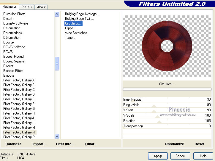 9. Effects>Plugins>Filters Unlimited 2.0 - Filter Factory Gallery N - Circulator...